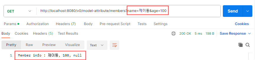 return ResponseEntity.ok("Member info : " + name + ", " + age);
